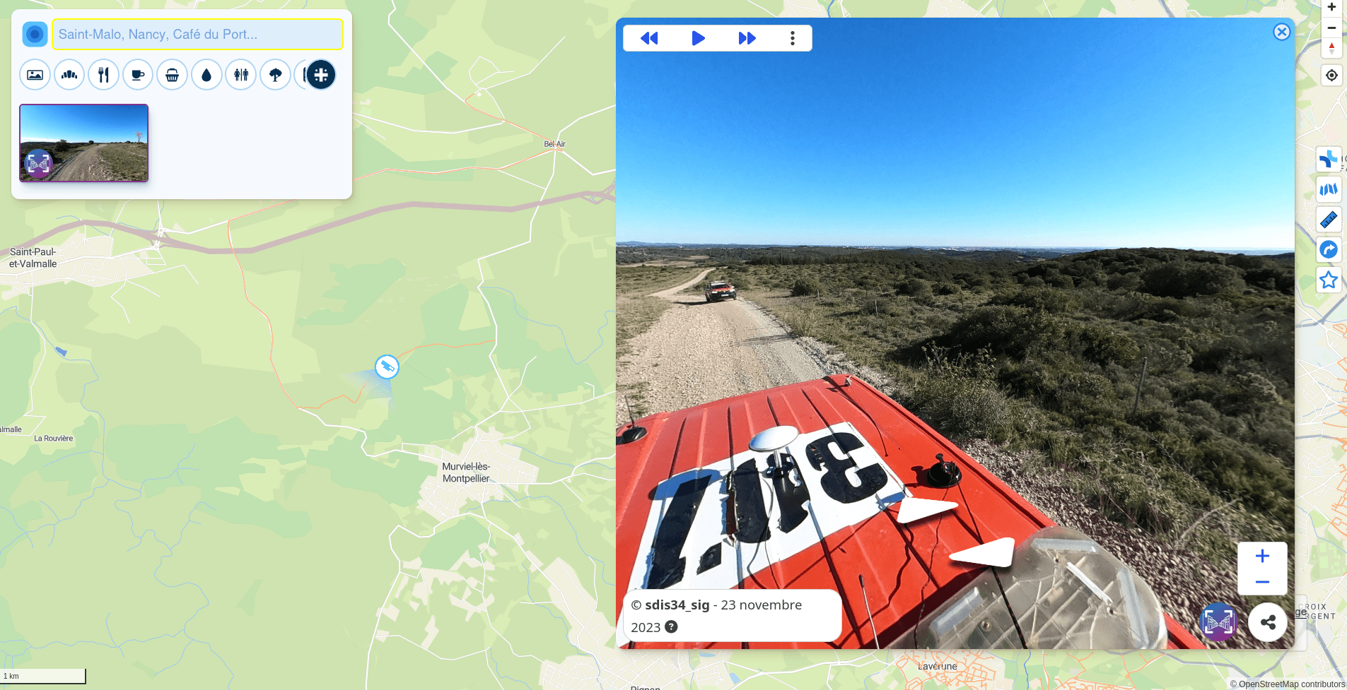 Petit charme de Panoramax : souvent on peut voir le véhicule qui a capté les photos Panoramax, ici le camion des pompiers du Hérault.